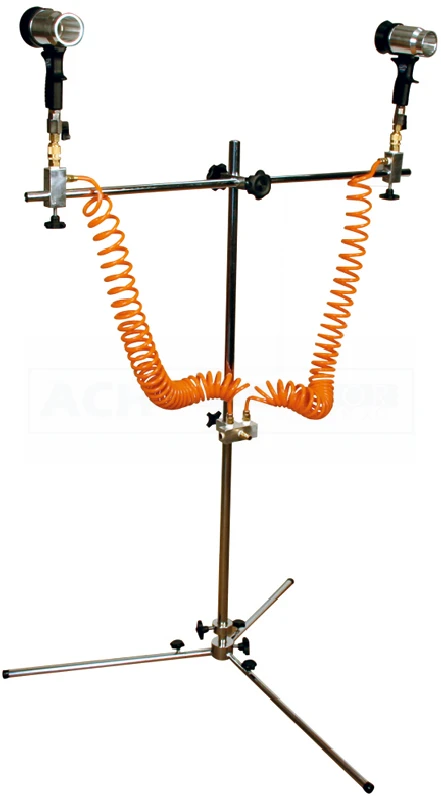 Stativ mit zwei abnehmbaren Venturi Luftpistolen zur Reduzierung der Trocknungszeiten, speziell bei wasserbasierenden Lacken. Höhenverstellbar von 30-210 cm.