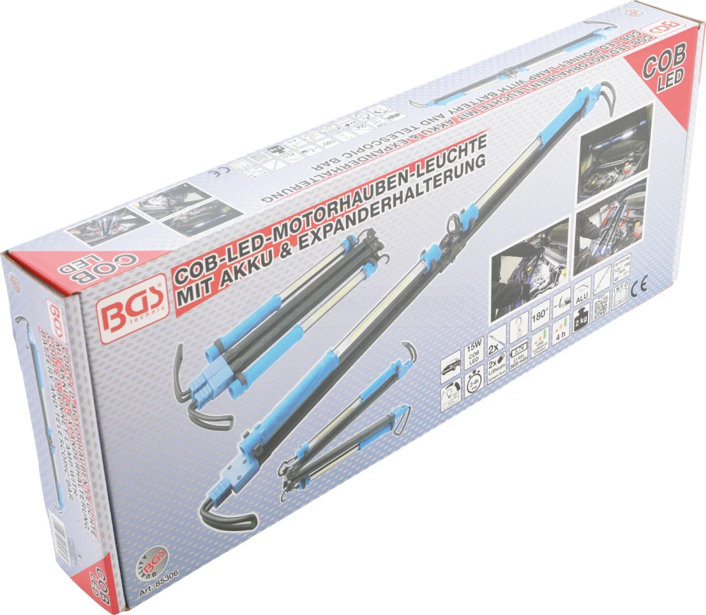 - 2 COB-LED-Motorhauben-Leuchten mit 2 verbauten Lithium-Ionen-Akkus