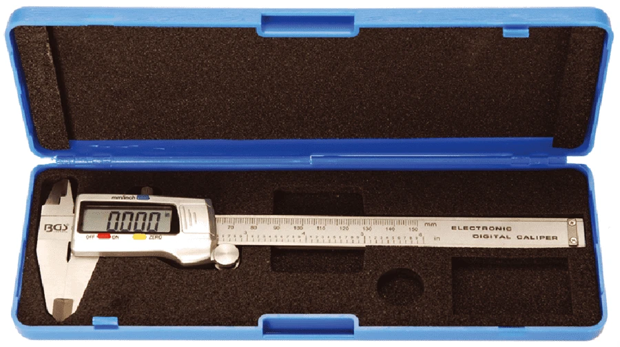 - mit Skala mm/Inch, Nonius 1/100 mm anzeigend