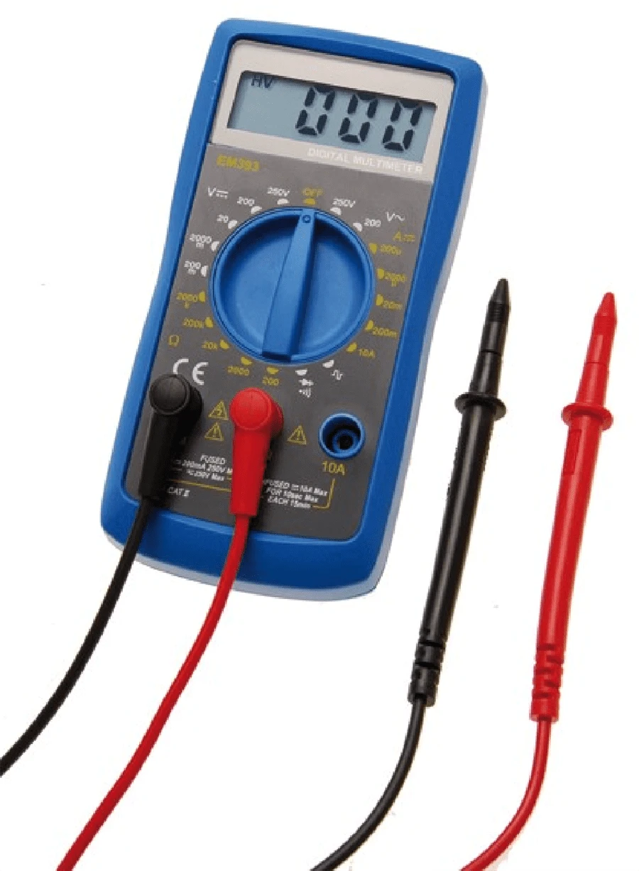 - Widerstand 200 Ohm, 2000 Ohm, 20 kOhm, 200 kOhm, 2000 kOhm