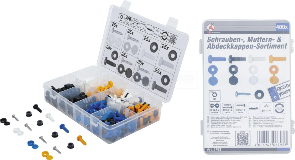 - 25 Kunststoffschrauben (weiß) M6 x 19 mm mit schwarzen M6 Kunststoffmuttern