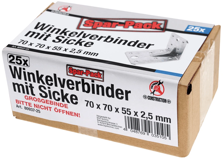 Winkelverbinder | mit Sicke | 70 x 70 x 55 x 2,5 mm | Spar-Pack | 25 Stück