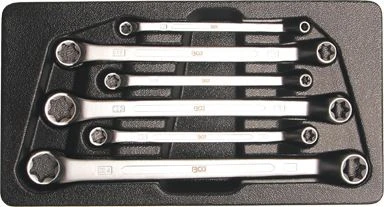 Doppel-Ringschlüssel-Satz mit E-Profil-Ringköpfen | tief gekröpft | SW E6 – E24 | 6-tlg.