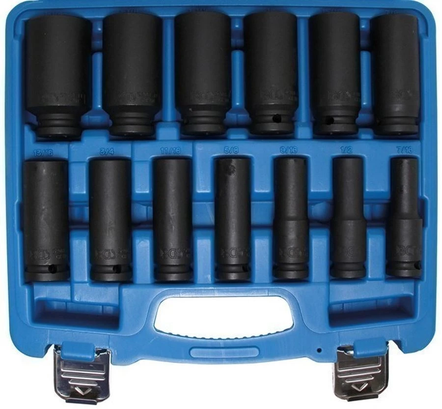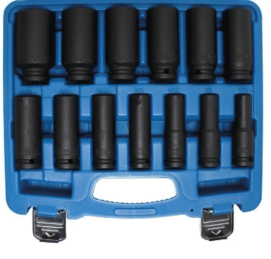 Kraft-Steckschlüssel-Einsatz-Satz Sechskant, tief | 12,5 mm (1/2″) | Zollgrößen | 13-tlg.
