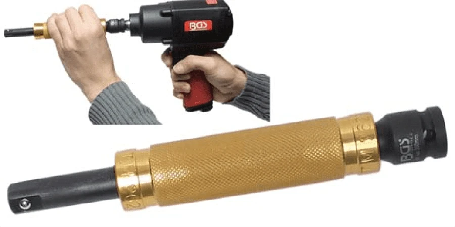 - gleichzeitig zusätzlicher Griff, so dass schwere Schlagschrauber mit beiden Händen ermüdungsfrei geführt werden können
