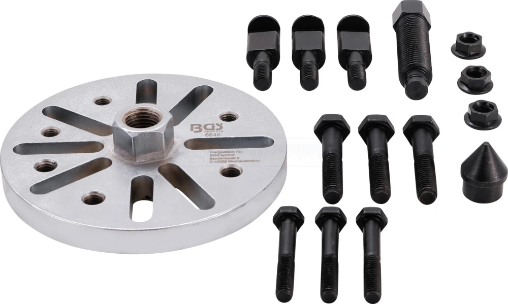- Abzieherplatte mit 8 Langlöchern zur Aufnahme der Abzieharme und Abziehbolzen