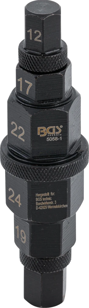 - 6 verschiedene Innensechskant-Größen 12 – 14 – 17 – 19 – 22 – 24 mm