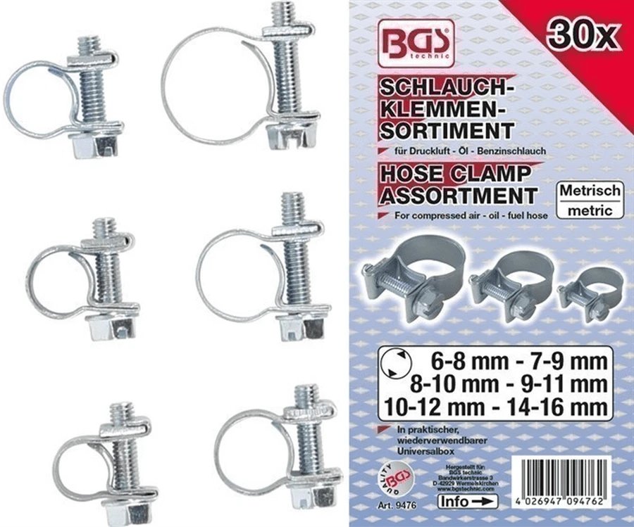 Schlauchklemmen-Sortiment | Ø 6 – 16 mm | 30-tlg.