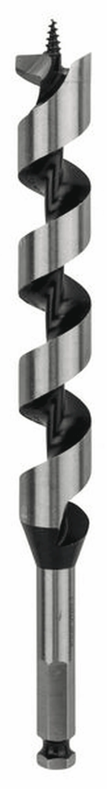 Holzschlangenbohrer, Sechskantschaft. Durchmesser: 24 mm, Arbeitslänge: 170 mm, Gesamtlänge: 235 mm, Schlüsselweite: 11,1 mm. Für präzise und saubere Bohrungen. Mit präzisionsgeschliffener Hauptschneide für schnelle Bohrungen. Nur geringe Bohrkraft erforderlich. Hochbelastbarer Bohrkopf mit selbsteinziehender Gewindespitze: Zieht den Bohrer auf der gesamten Länge bis zum Durchbruch durch das Material. Mit massivem Kernteil und reibungsarmer Spirale für gerade Bohrungen und hohe Spanabfuhr. Geeignet für alle Weich- und Harthölzer, sogar in nassem Holz. Ideal für Einsatz im Baunebengewerbe: Bei Zimmerleuten, Dachdeckern. Für Durchgangsbohrungen und Vorbohren von Sparrennägeln und für Stabdübelbohrungen. Einsetzbar in allen Bohrmaschinen mit 13-mm-Bohrfutter. Präzisionsgeschliffen für maßhaltige Bohrungen. Hoher Bohrfortschritt durch optimierte Wendelgeometrie. Hohe Bruchsicherheit. Feiner Oberflächenschliff.