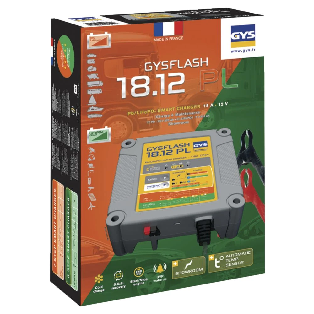 Mit einer 18 A Leistung ist das GYSFLASH 18.12 PL ein Ladegerät intelligenten für Fahrzeuge mit 12V-Blei-Säure- und Lithium-Eisen-Phosphat-Batterien (LiFePO4).