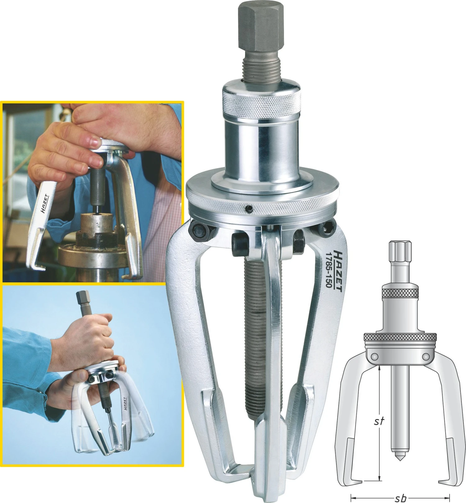 - Einfache Drehbewegung öffnet Haken und umschließt automatisch abzuziehendes Teil auch bei senkrechter Anwendung (Nachjustieren entfällt)