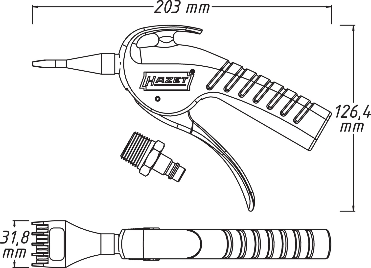 HAZET Ausblaspistole geräuscharm mit breiter Flachdüse 9040P-5h