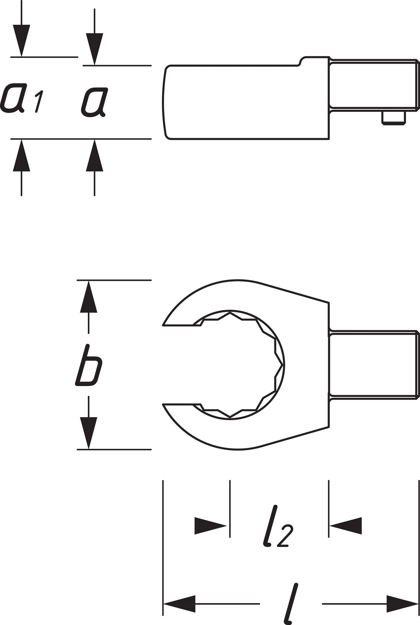 - Antrieb: Einsteck-Vierkant 9 x 12 mm