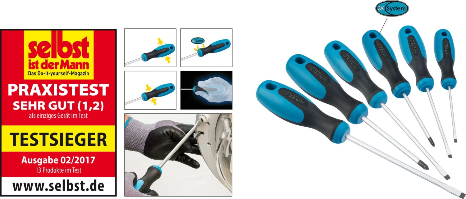 HAZET Schraubendrehersatz Kreuzschlitz Profil PH Schlitz Profil 6-teilig 810/6h