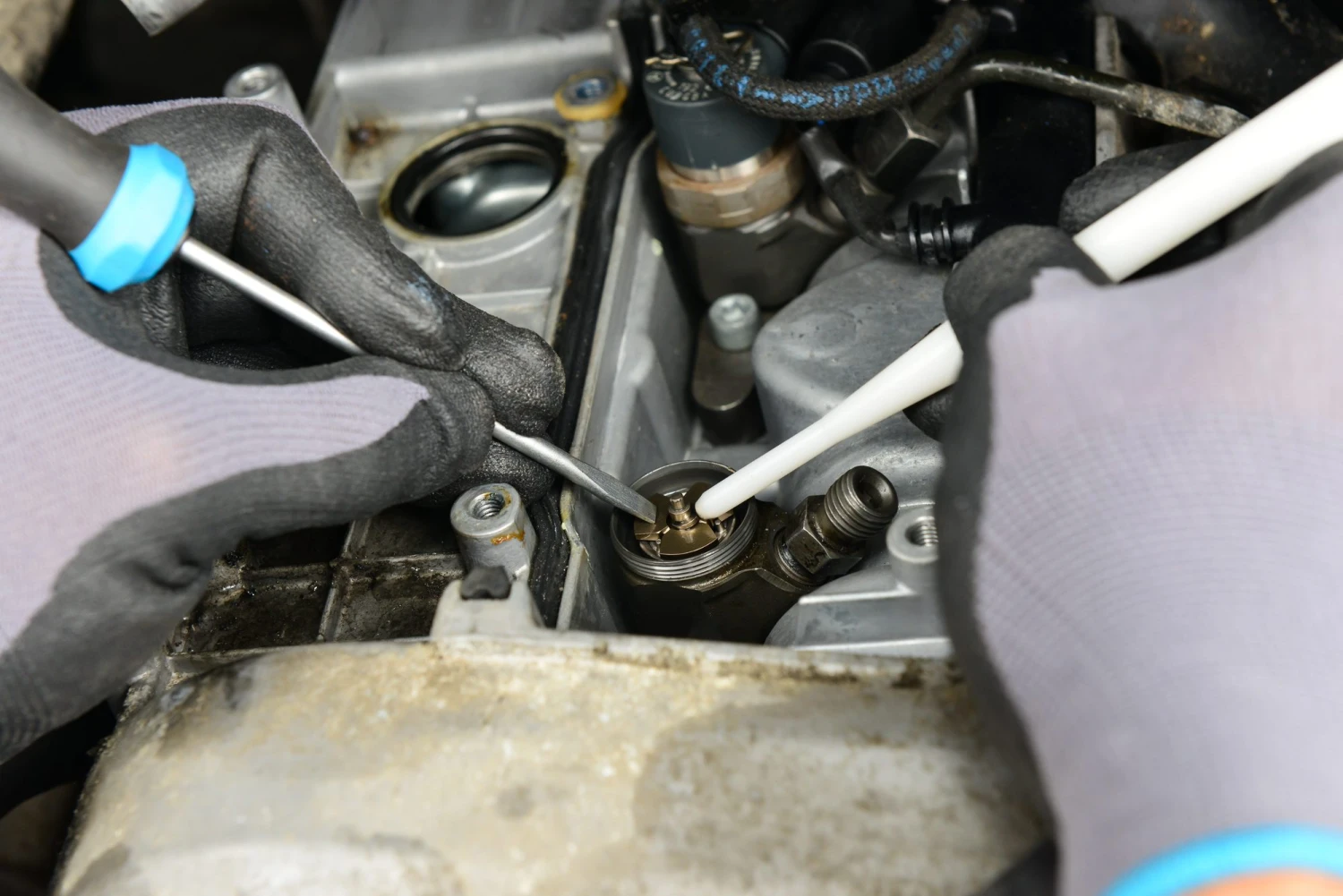 Demontage der Magnetventil-Verschraubung an Bosch-Injektoren
