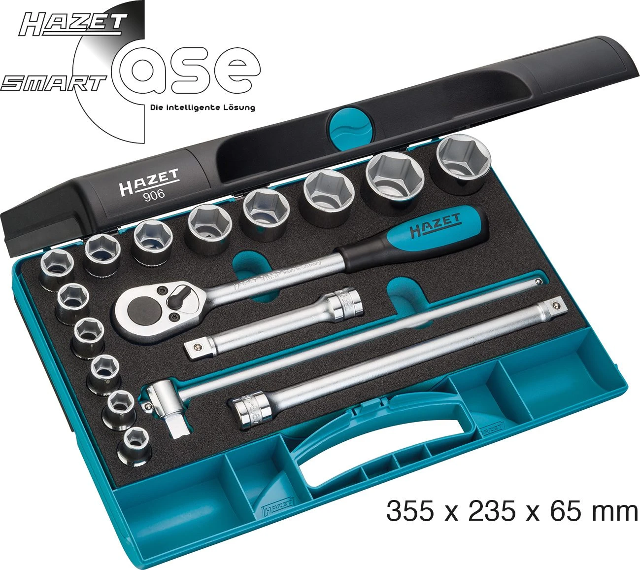 HAZET Steckschlüsselsatz 12,5mm 1/2 Zoll Außen-Sechskant-Tractionsprofil 17-teilig 906