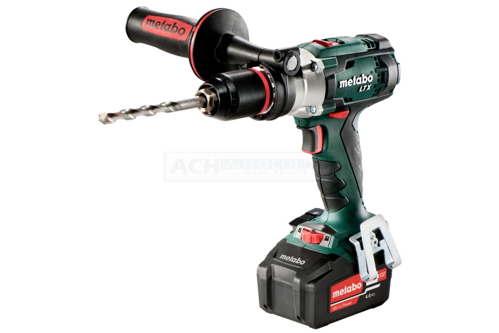 Schnellspannbohrfutter Futuro Plus mit Metallhülse, Zusatzhandgriff, Gürtelhaken und Bitdepot, 2 Li-Power Akkupacks (18 V/4,0 Ah), Ladegerät ASC 55 „AIR COOLED“, Kunststoffkoffer