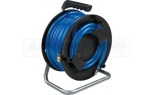 Mit 20 m Druckluftschlauch mit Gewebeeinlage. Schnellanschlusskupplung 1/4 Euro und Stecknippel 1/4 Euro.