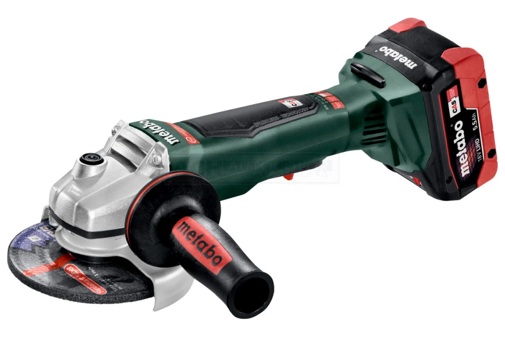 Schutzhaube, Stützflansch, Schnellspannmutter, Zusatzhandgriff, Staubschutzfilter, 2 LiHD Akkupacks (18 V/5,5 Ah), Schnellladegerät ASC 145 „AIR COOLED“, Kunststoffkoffer