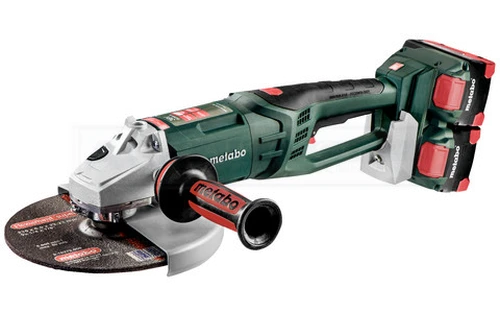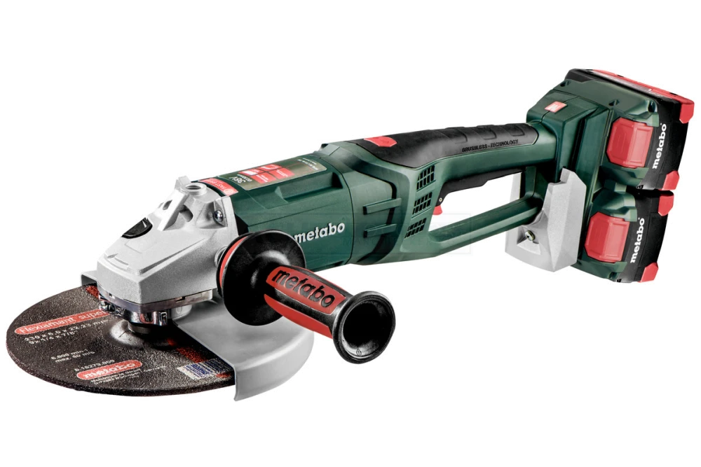 Schutzhaube, Stützflansch, Zweilochmutter, Zusatzhandgriff Metabo VibraTech (MVT), Zweilochschlüssel, 4 LiHD Akkupacks (18 V/8,0 Ah), 2 Schnellladegeräte ASC Ultra „AIR COOLED“, Kunststoffkoffer