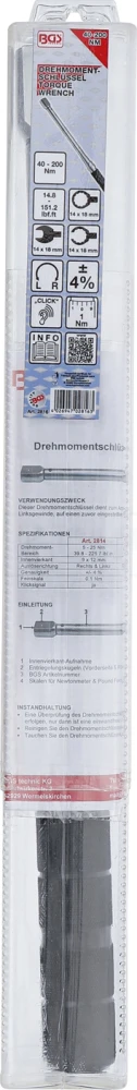 BGS Drehmomentschlüssel | 20 – 200 Nm | Für 14 X 18 Mm Einsteckwerkzeuge – 2816